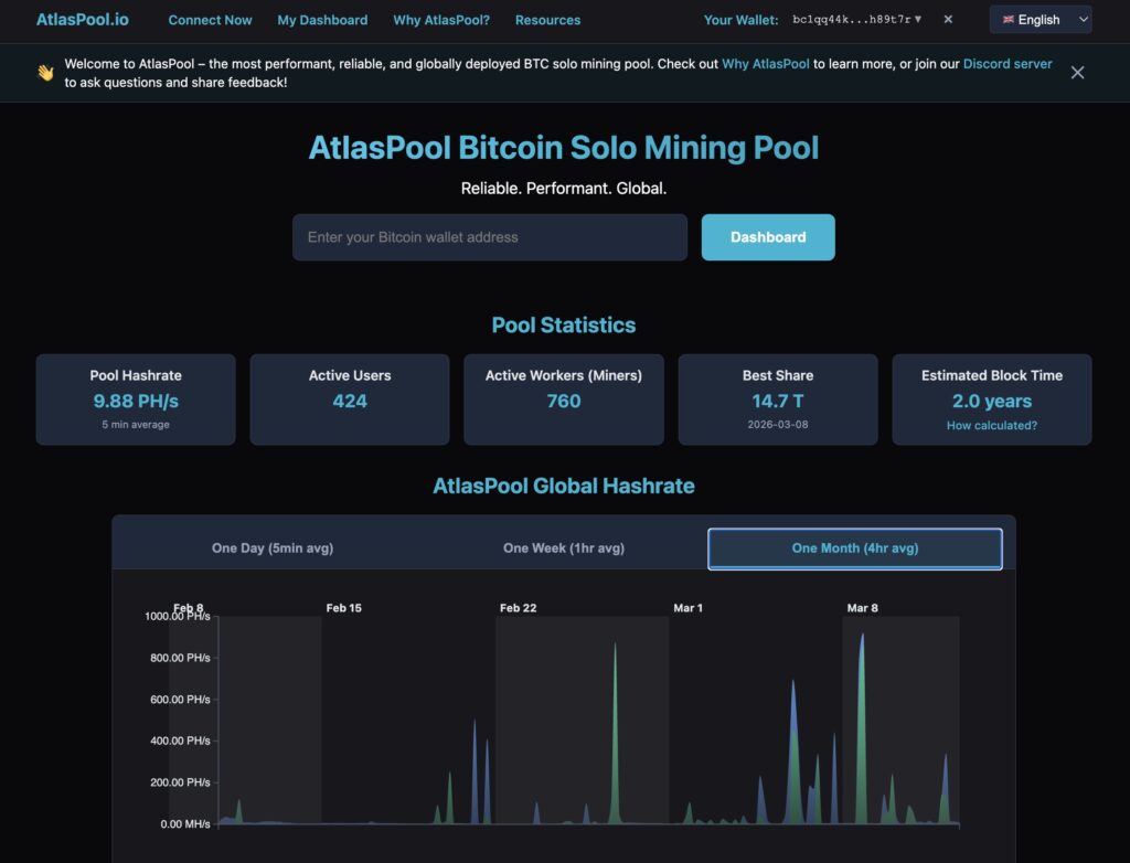 For miners who want a plug-and-play solo mining setup with enterprise-grade infrastructure, Atlas Pool is currently one of the most polished options available.